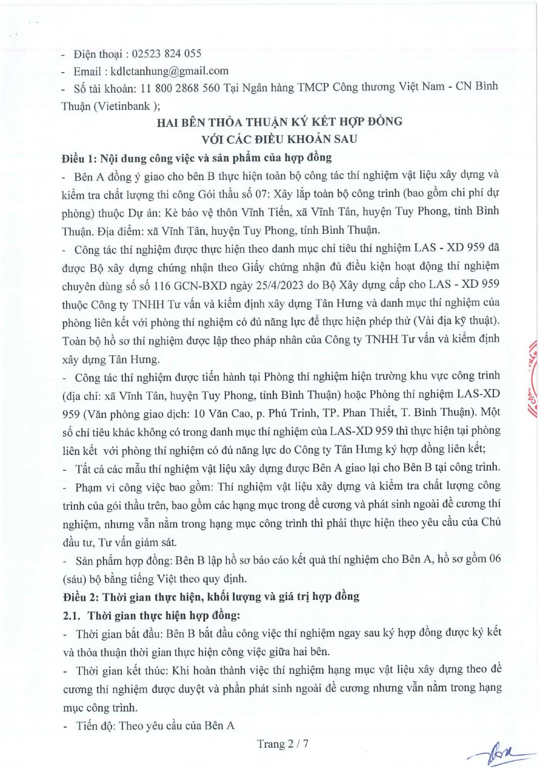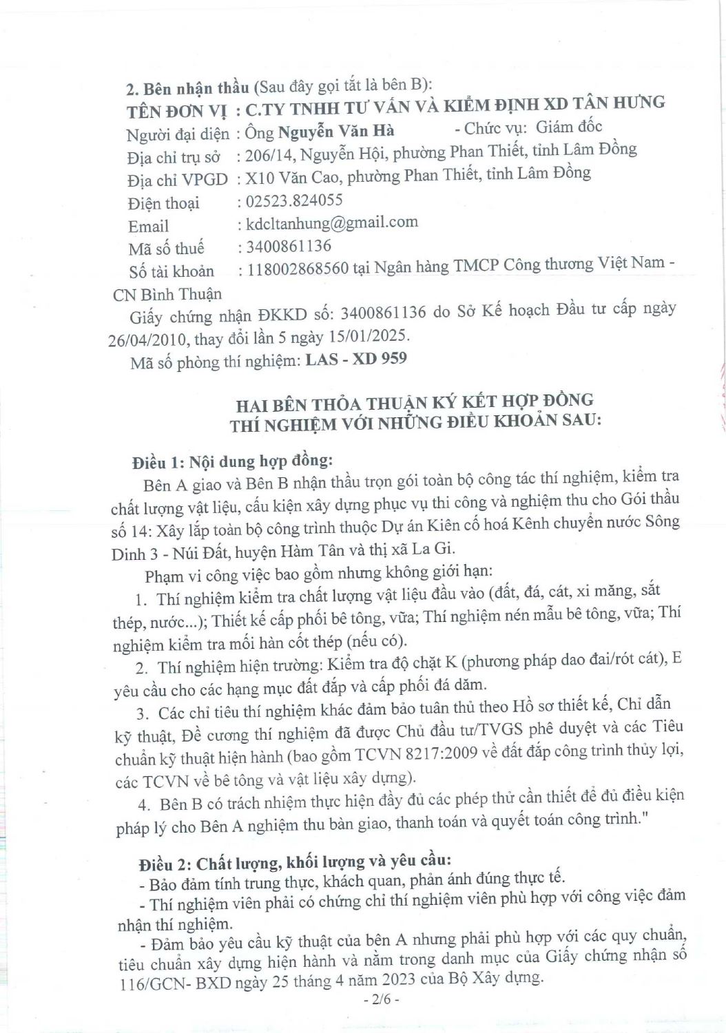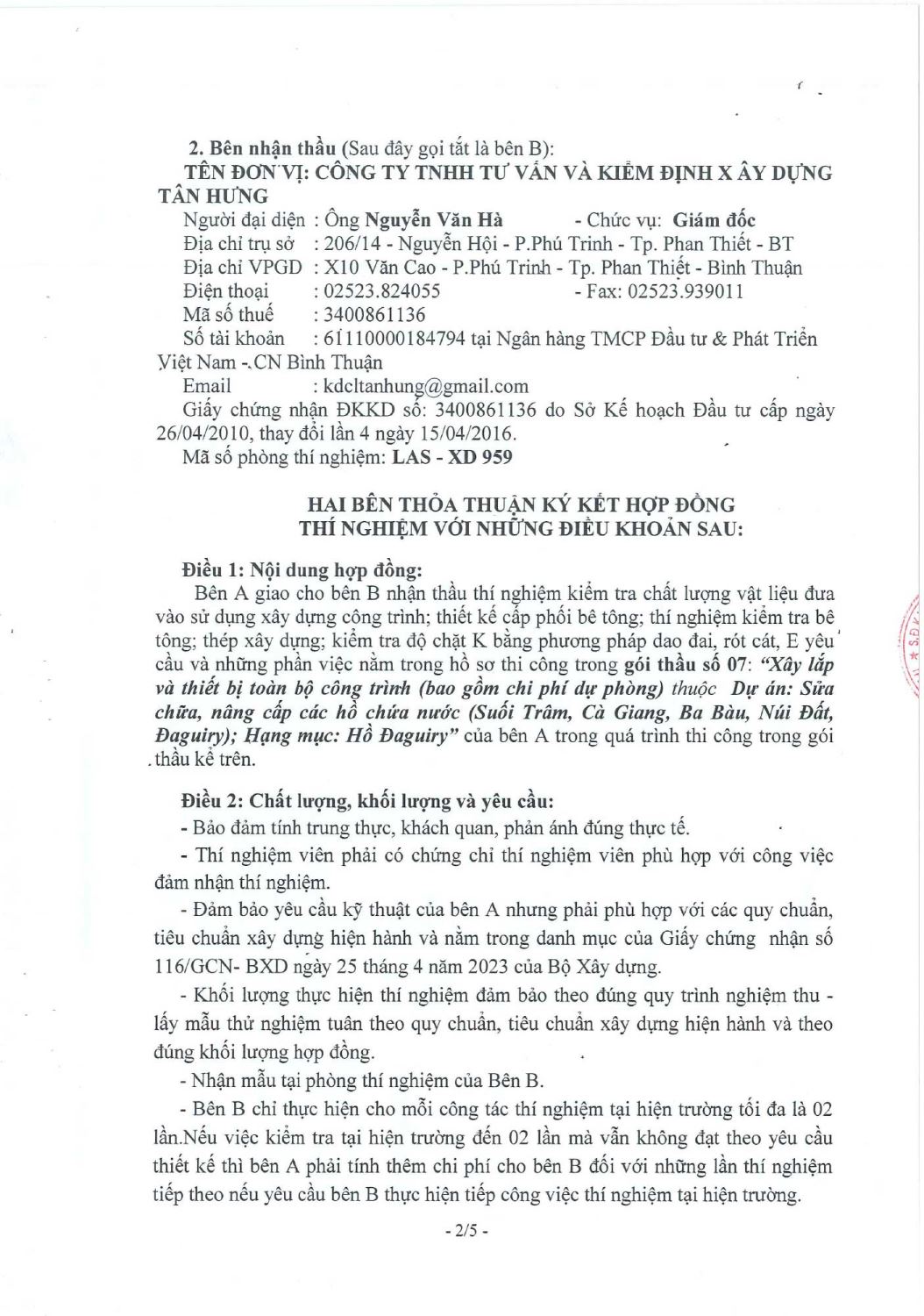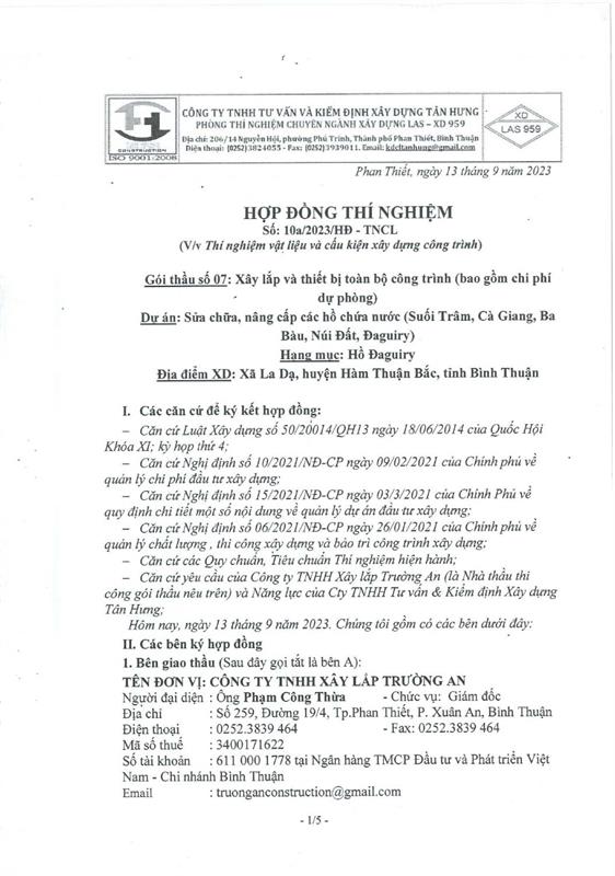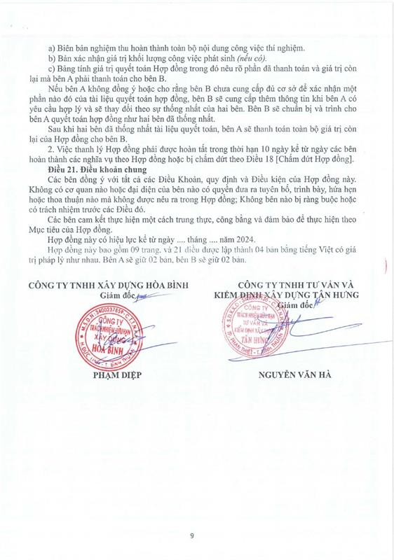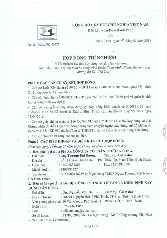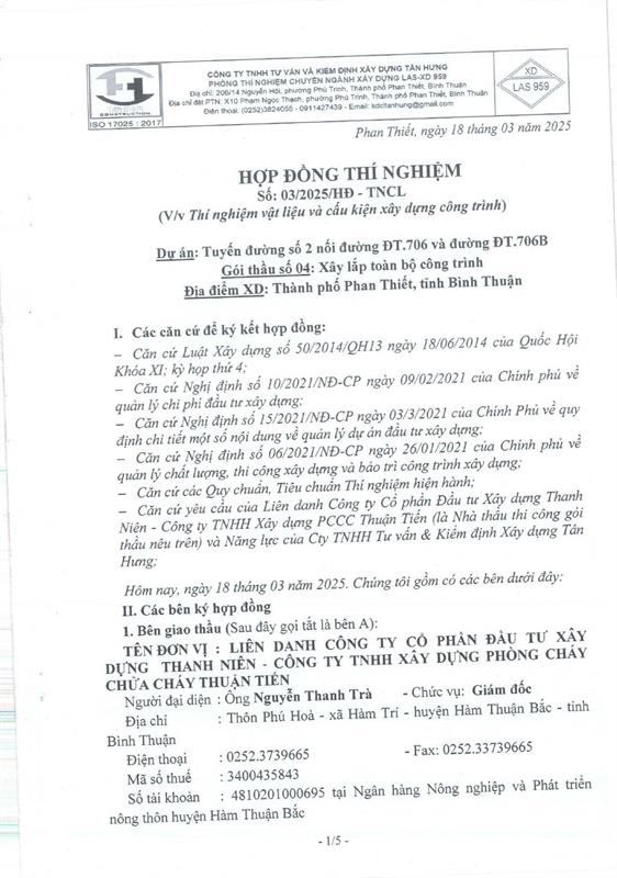 Hợp Đồng Thí Nghiệm