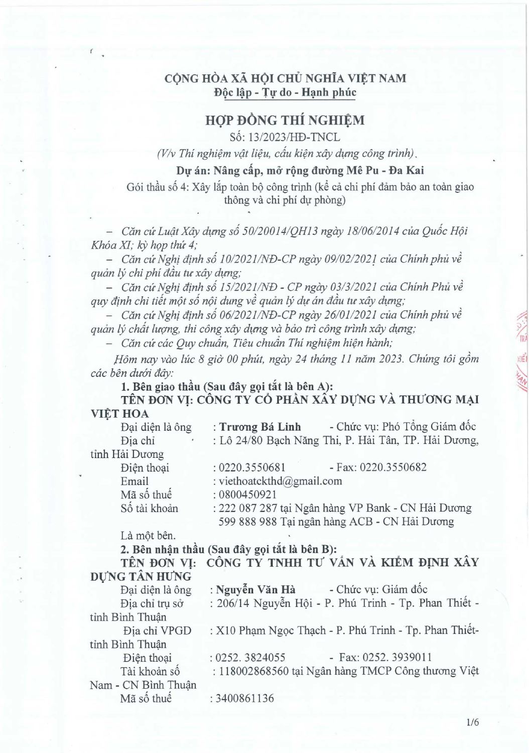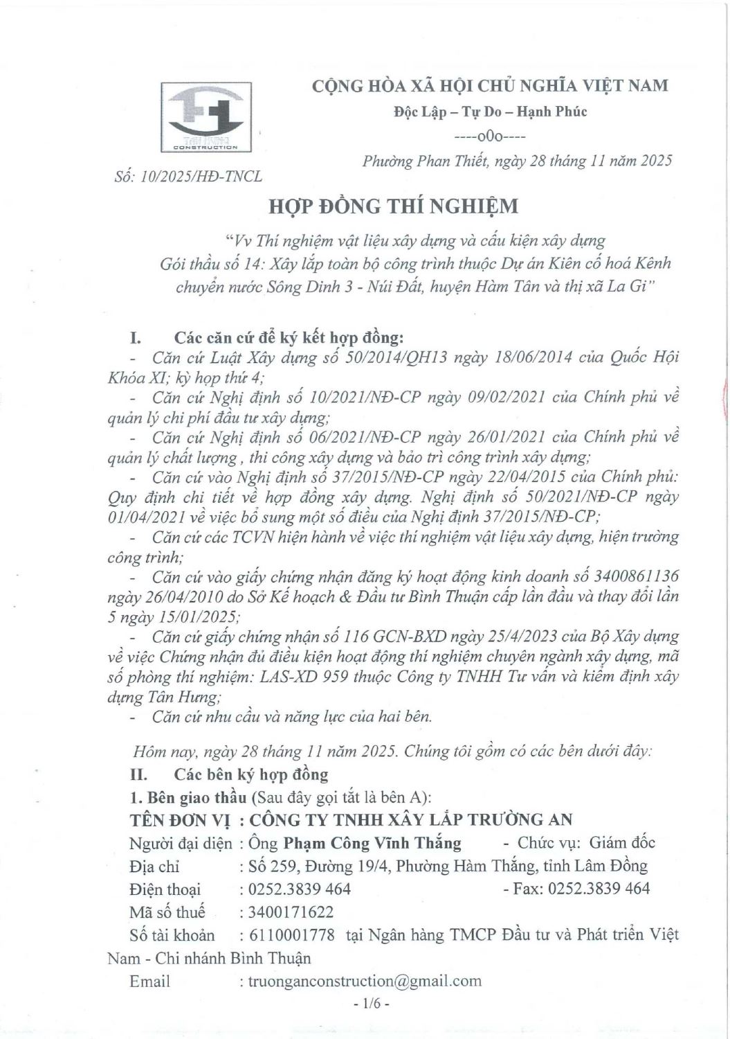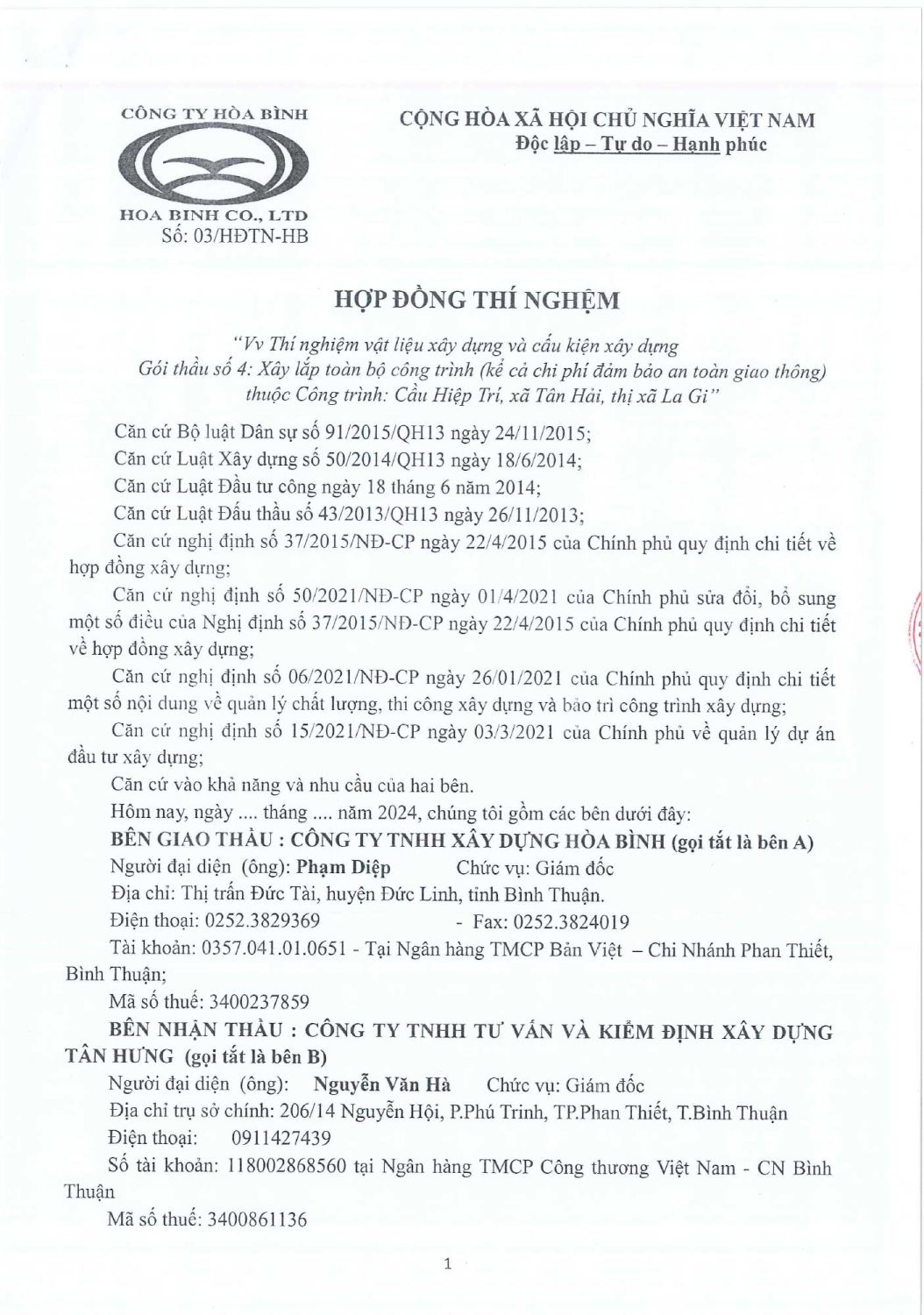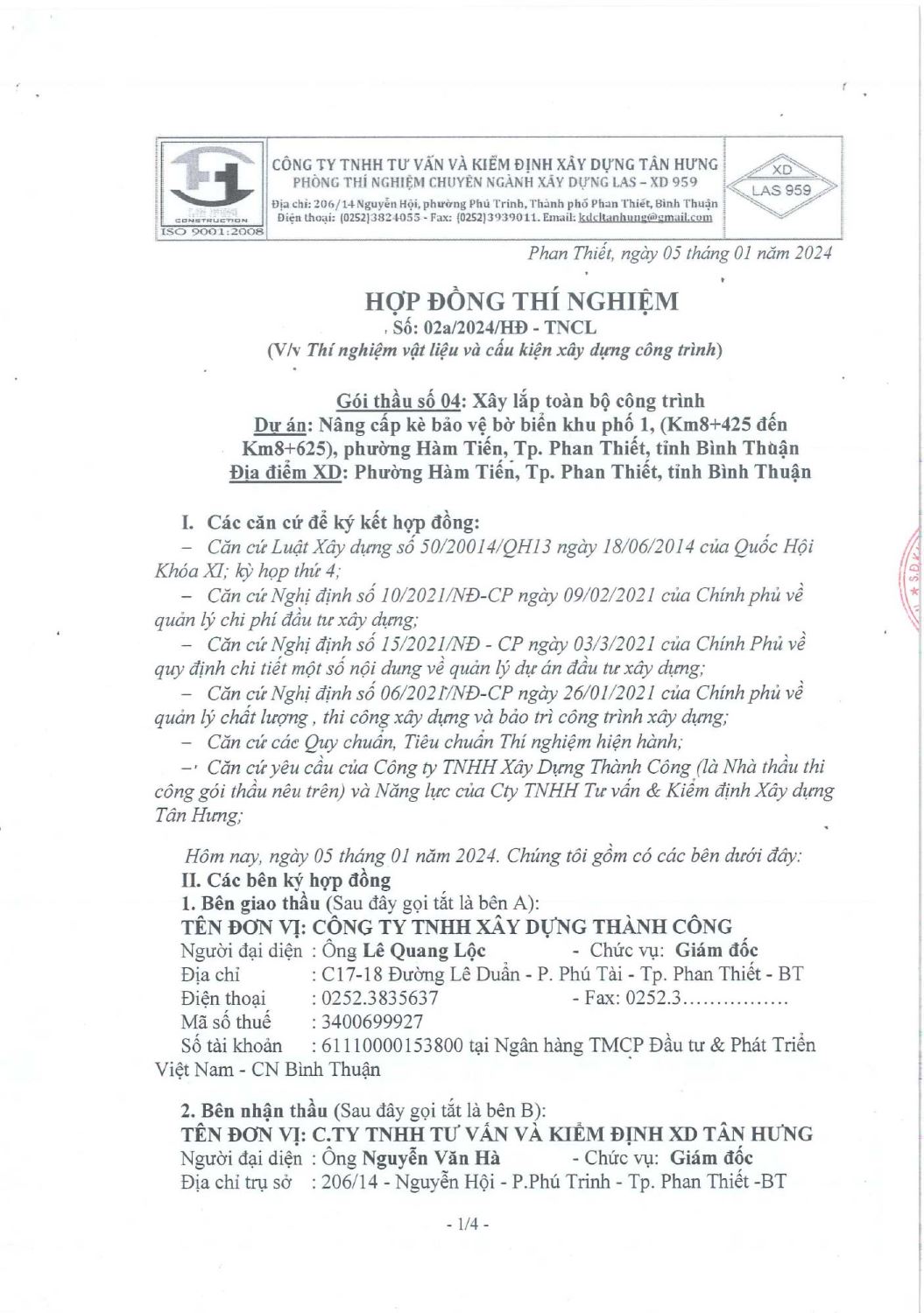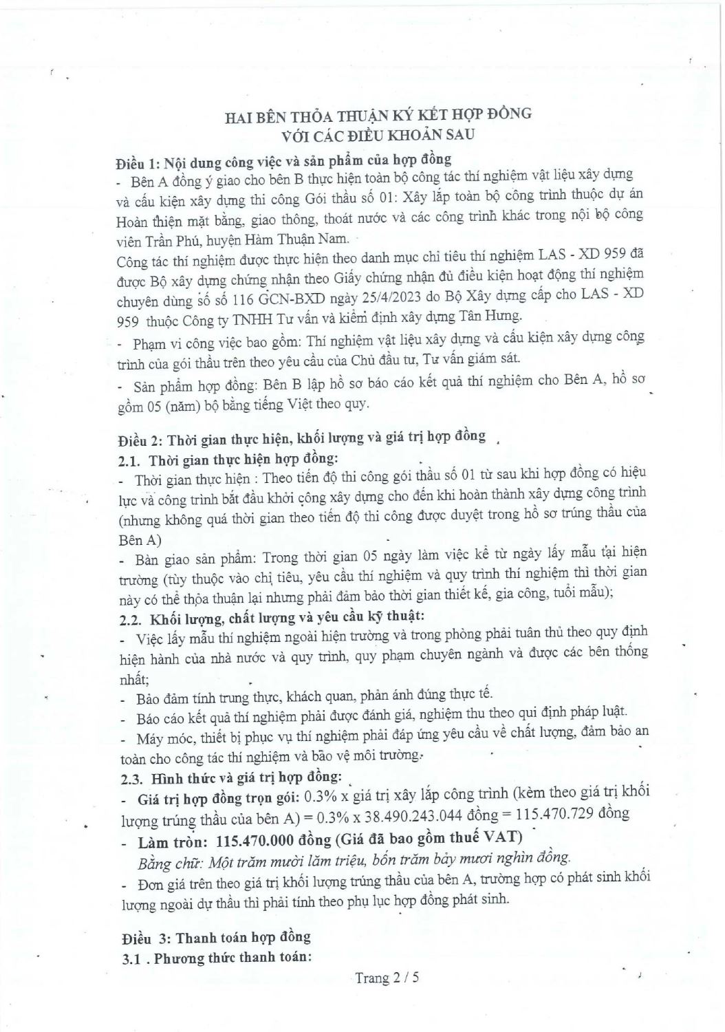 Hợp Đồng Thí Nghiệm