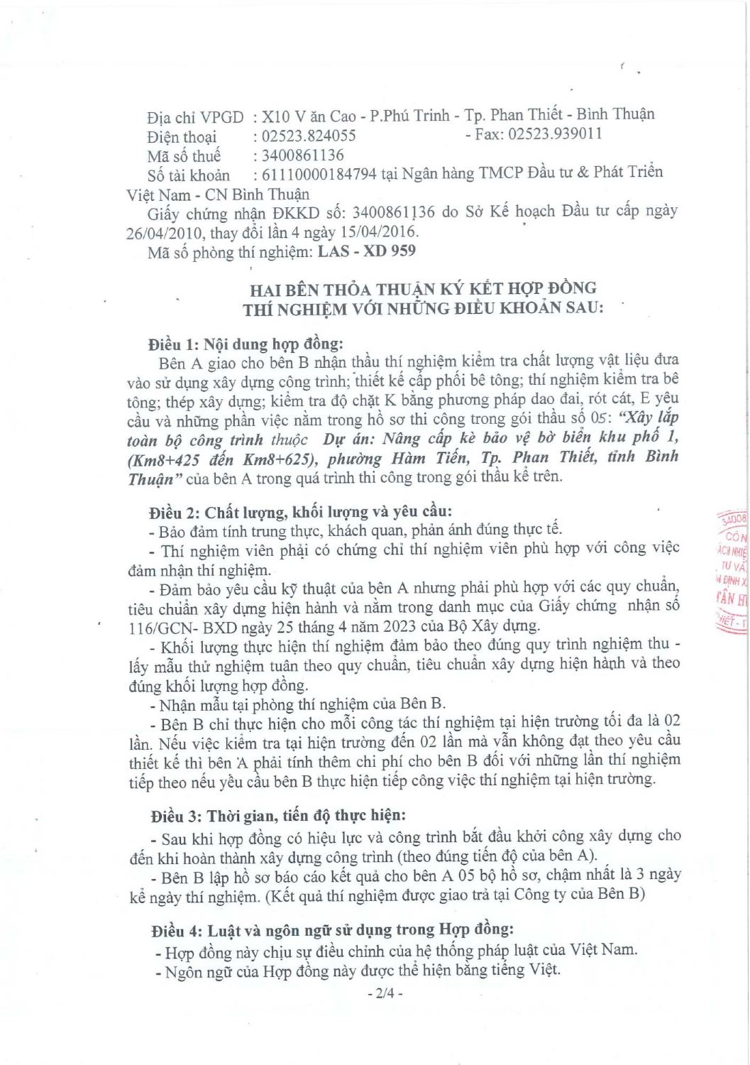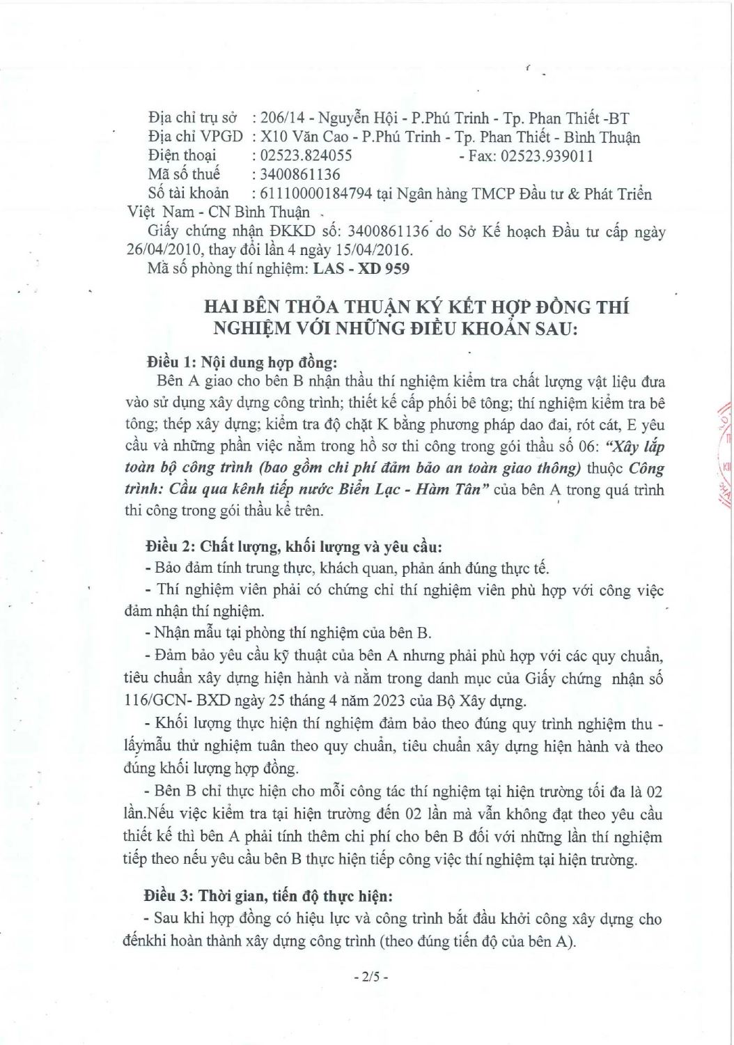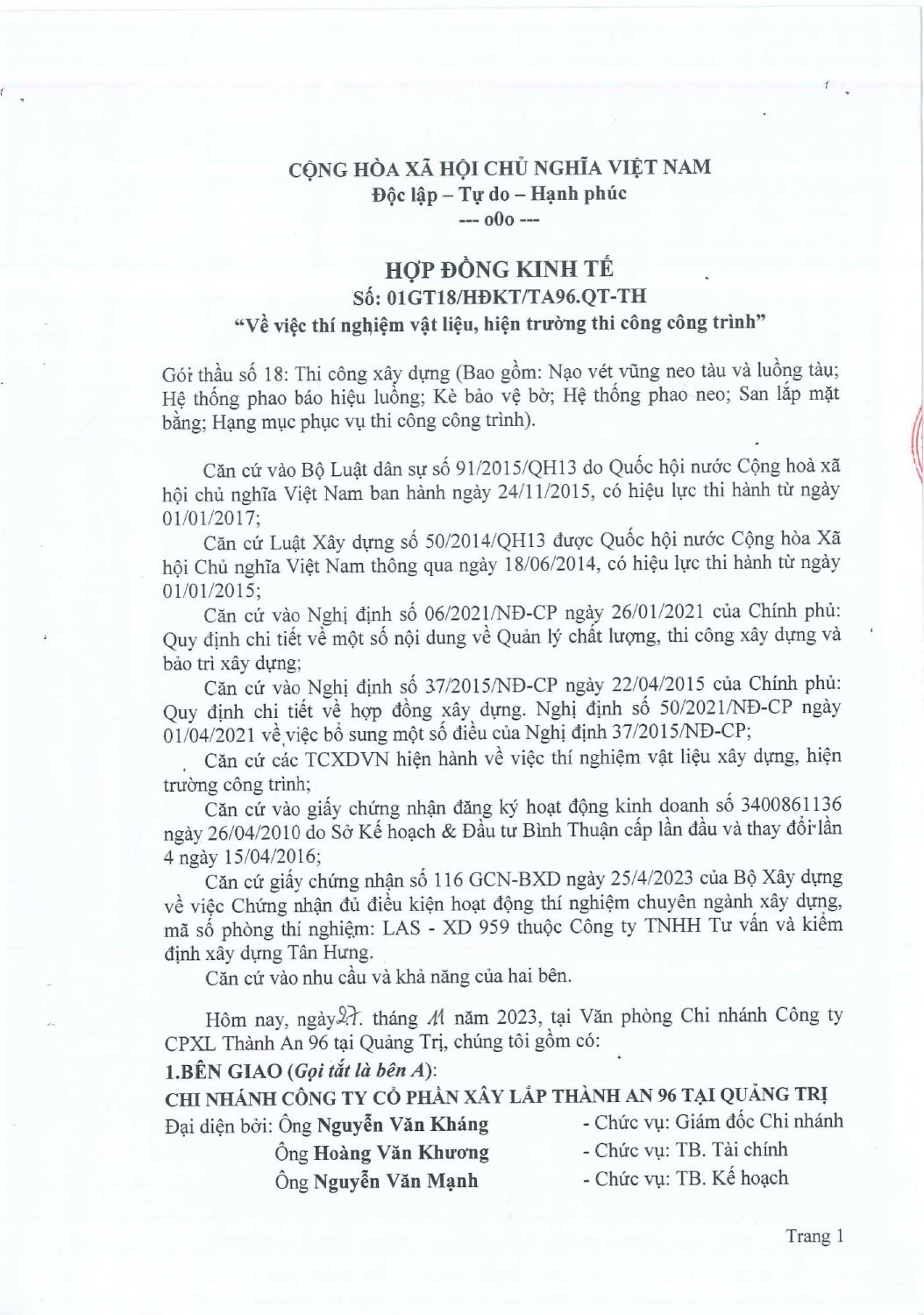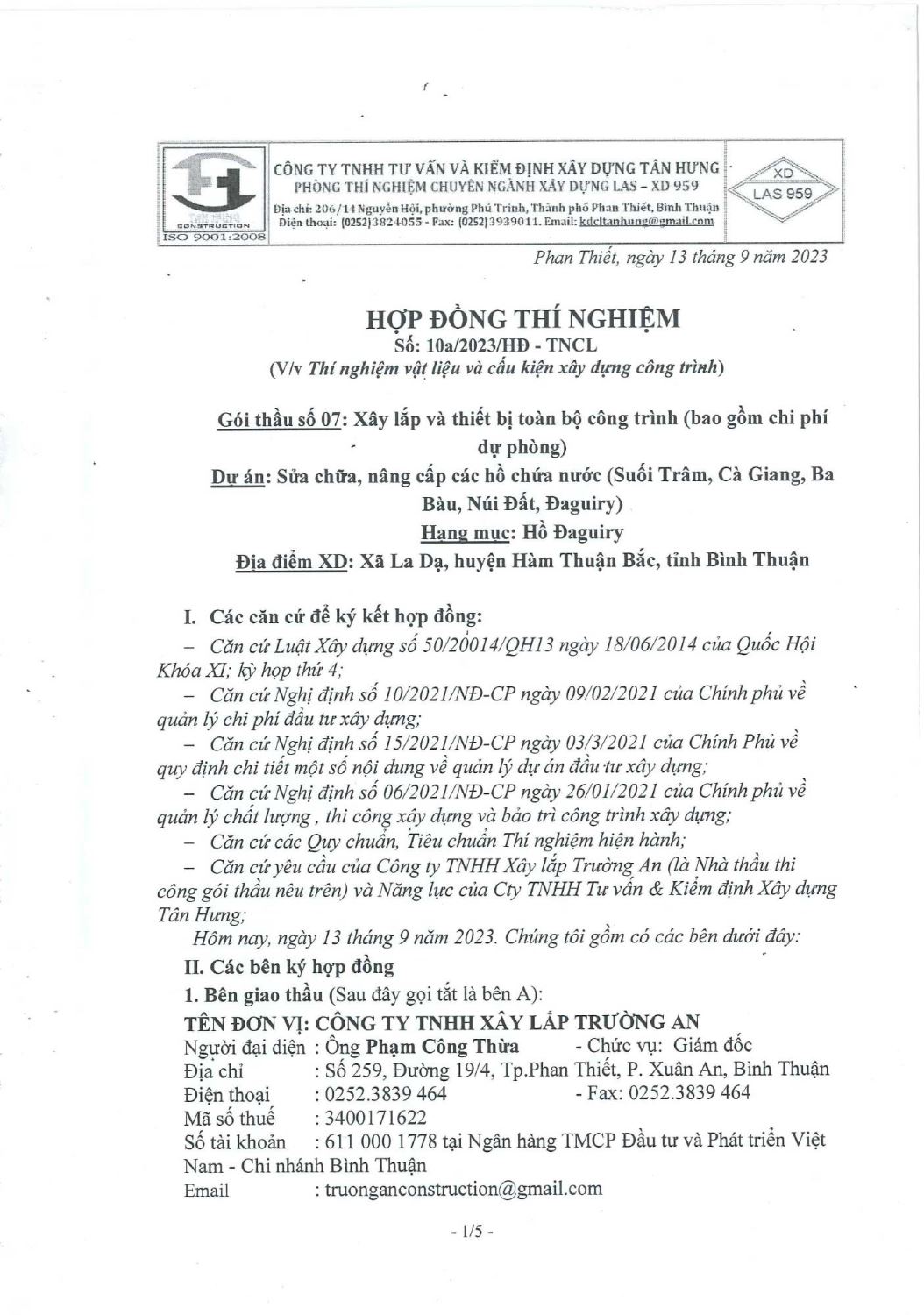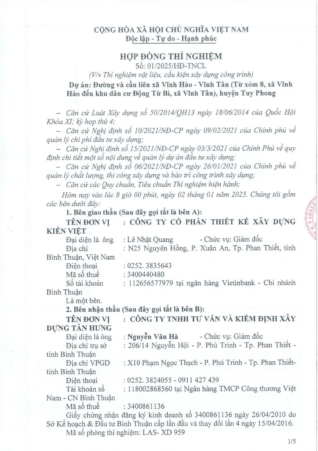 Hợp Đồng Thí Nghiệm