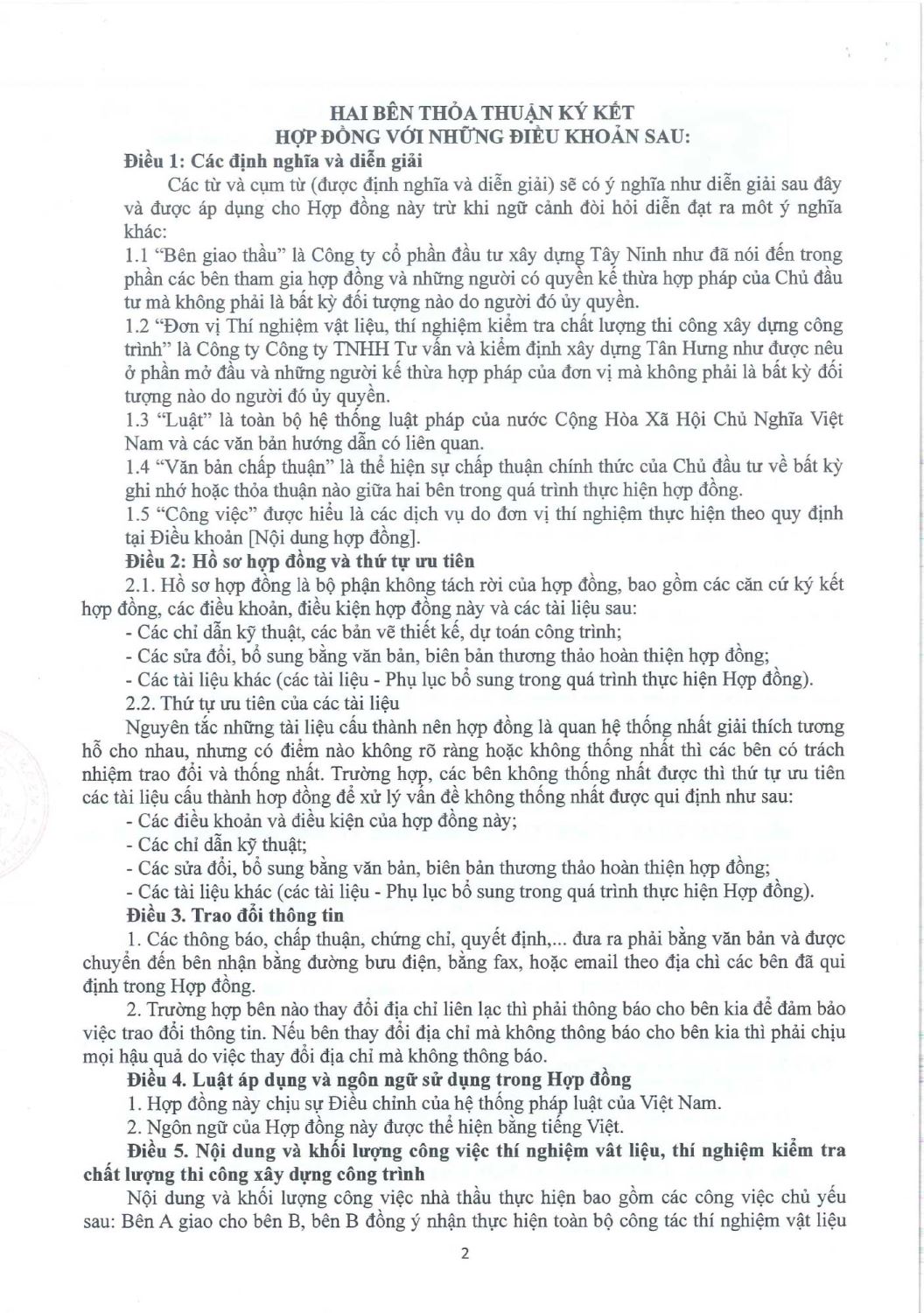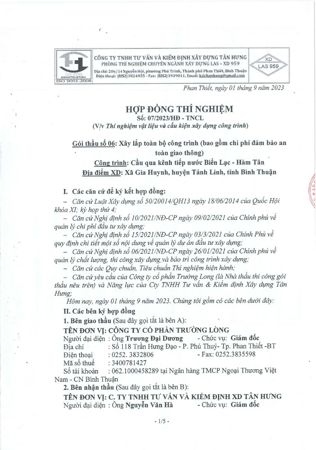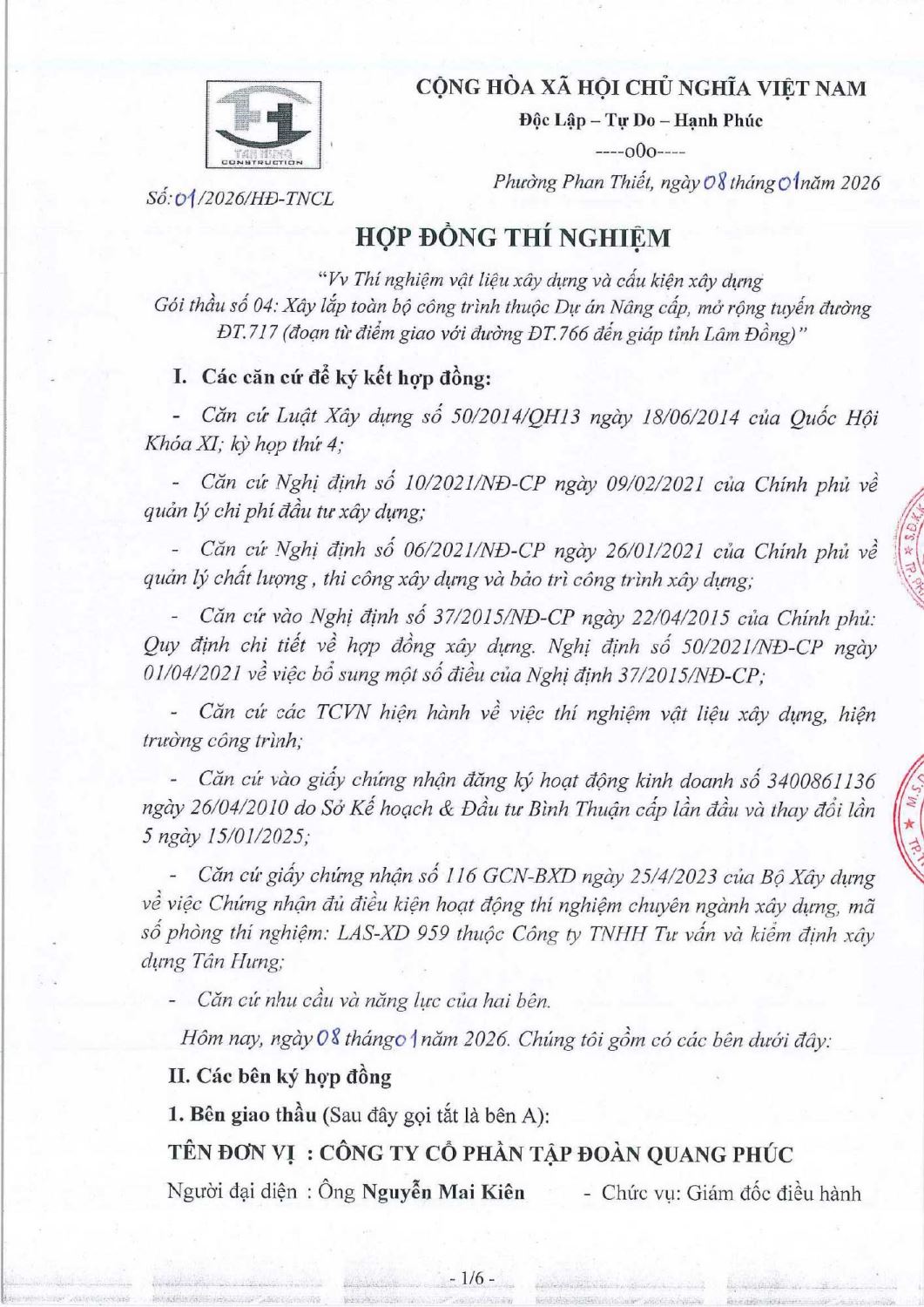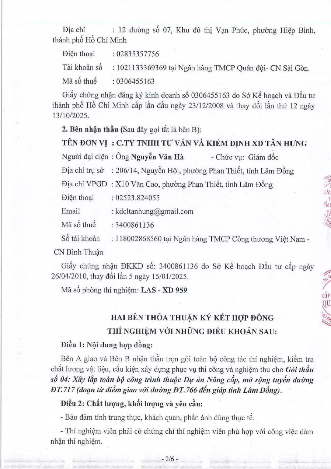 Hợp Đồng Thí Nghiệm