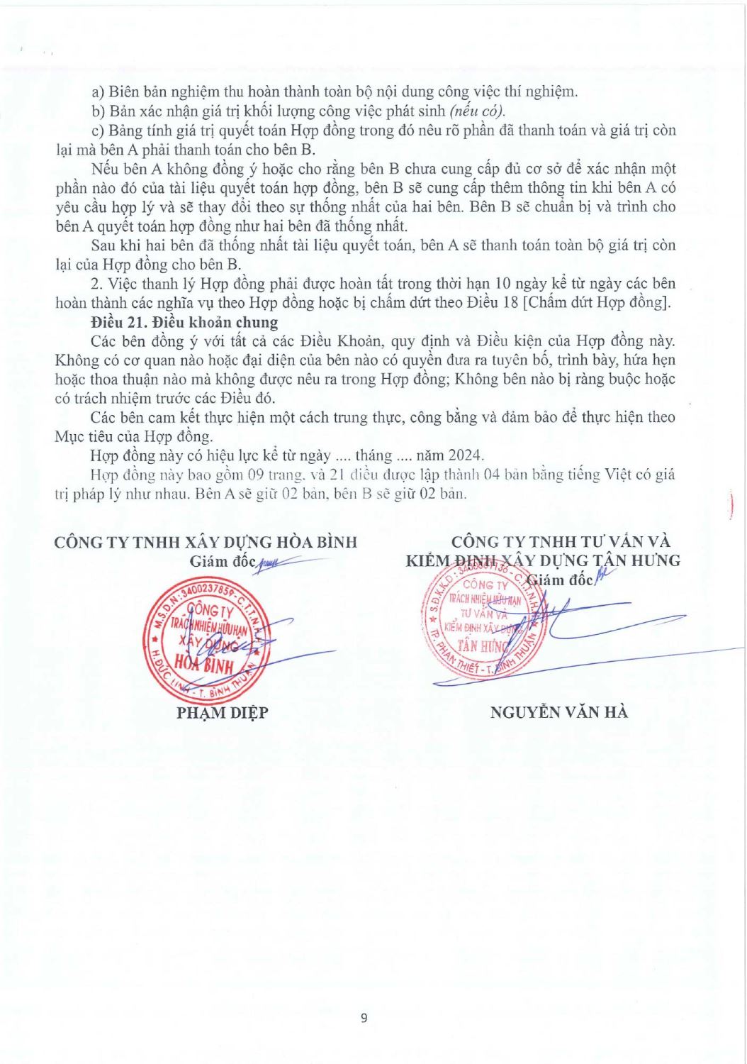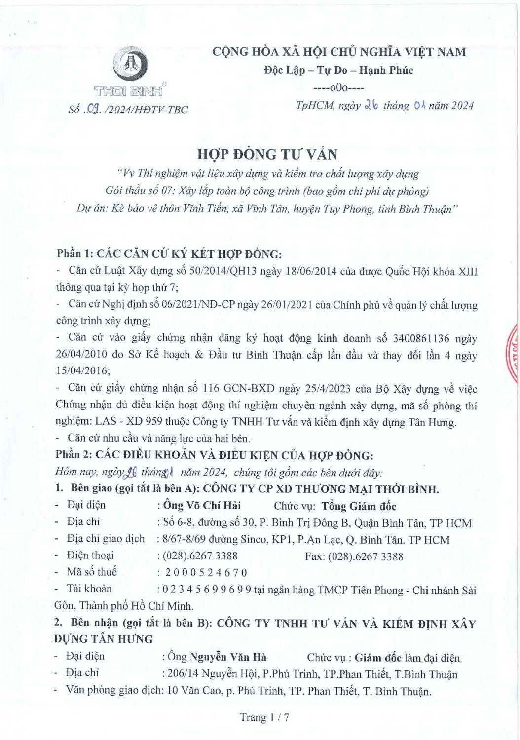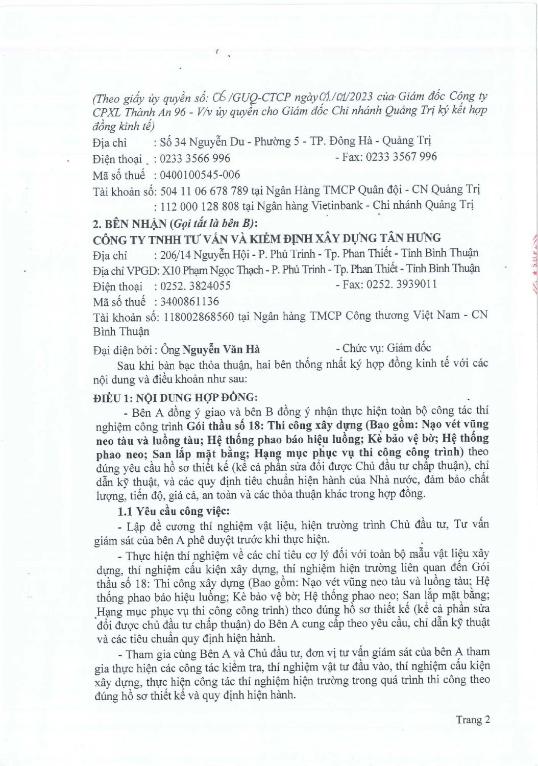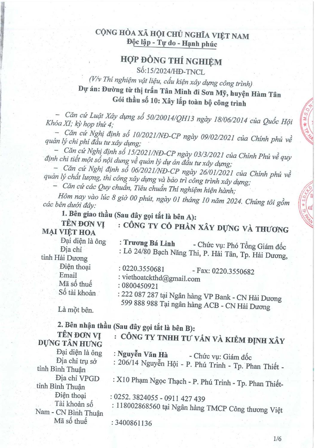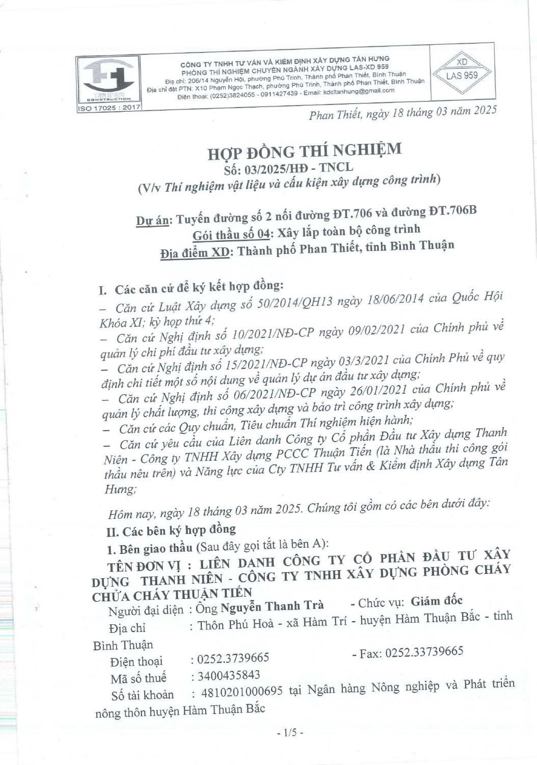 Hợp Đồng Thí Nghiệm