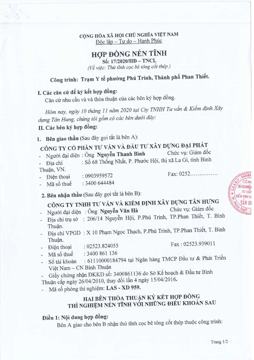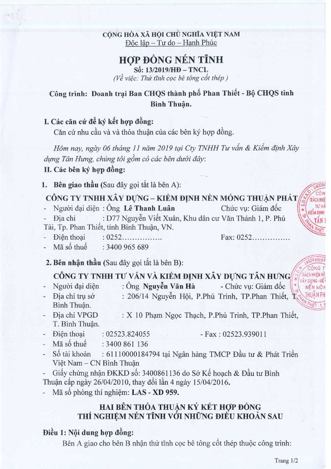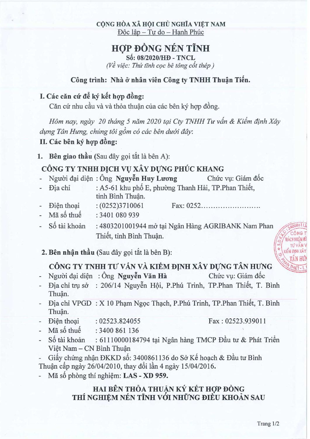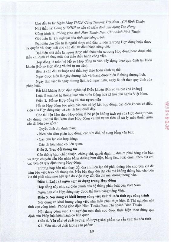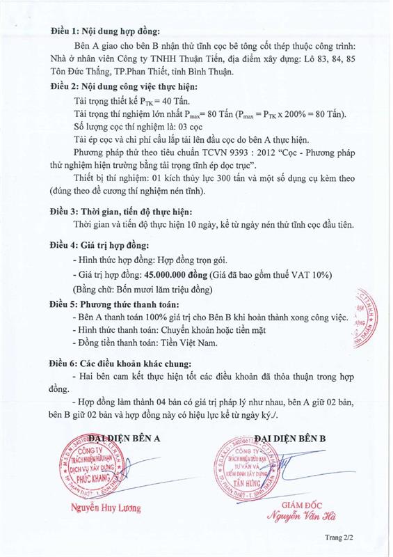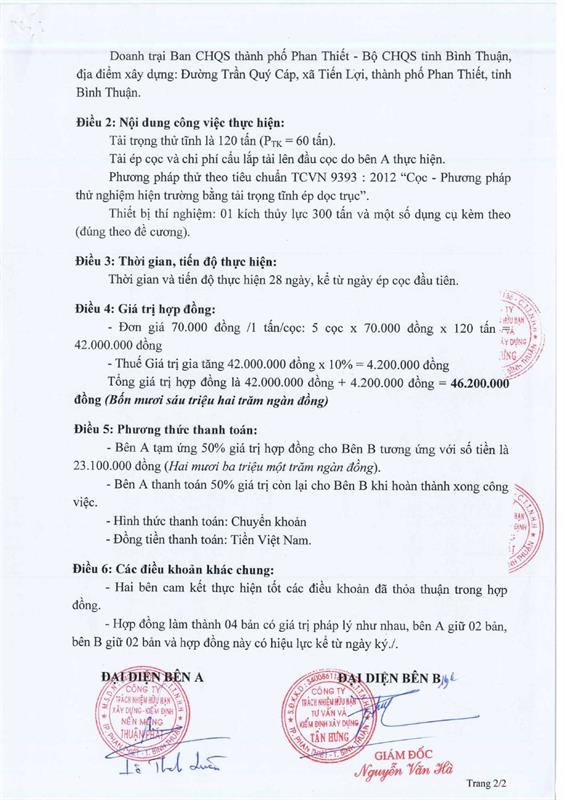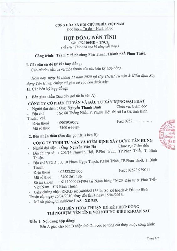 Hợp Đồng Thí Nghiệm Nén Tĩnh