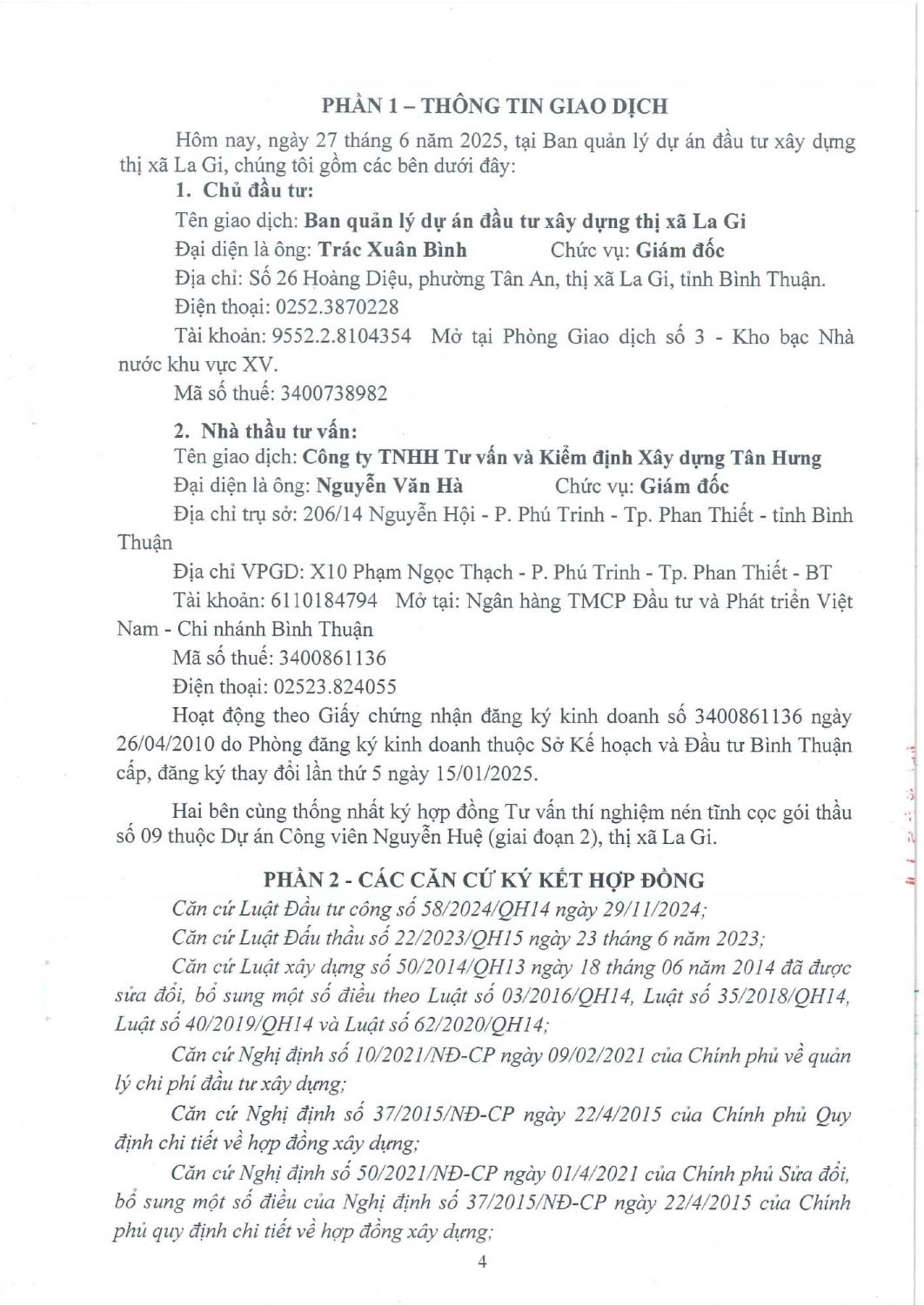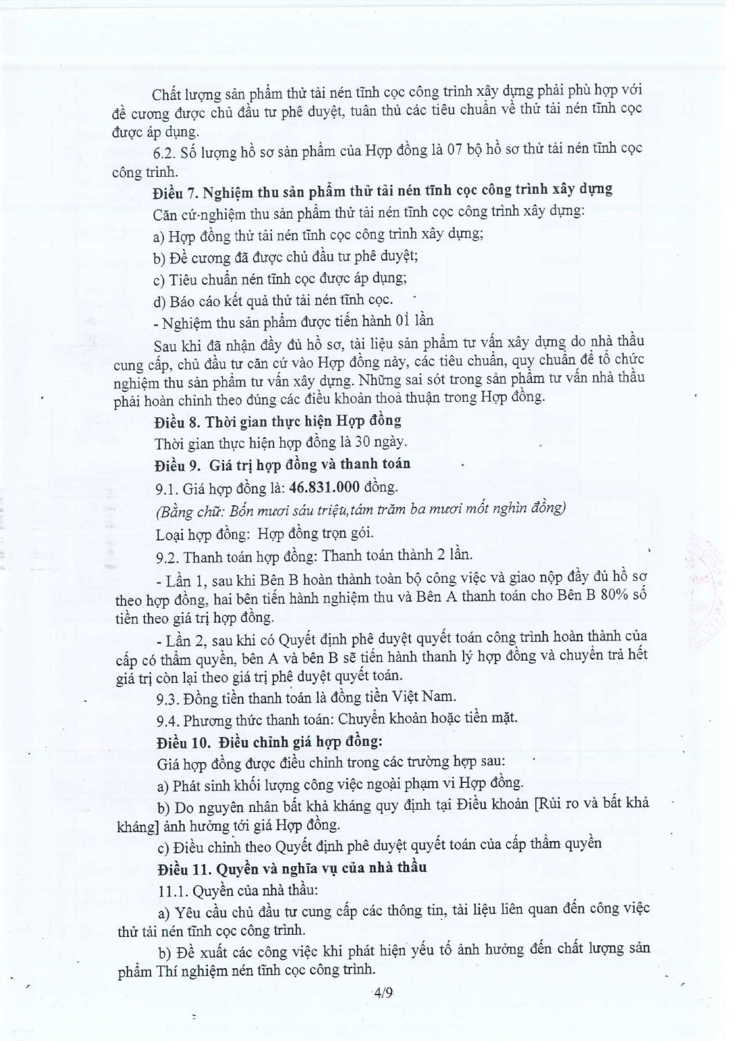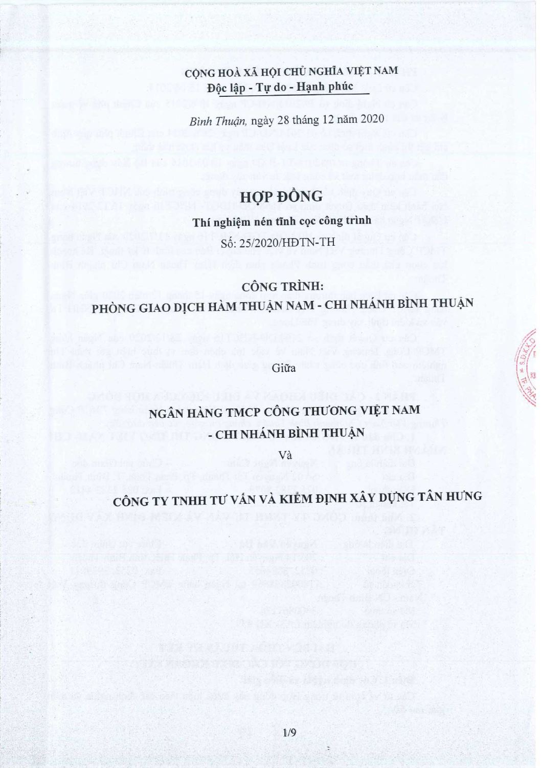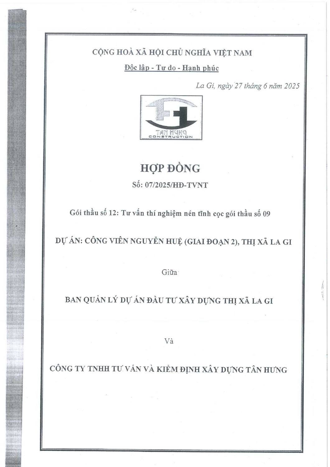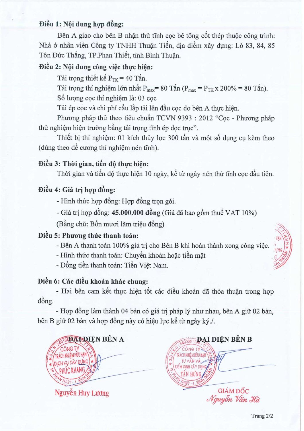 Hợp Đồng Thí Nghiệm Nén Tĩnh